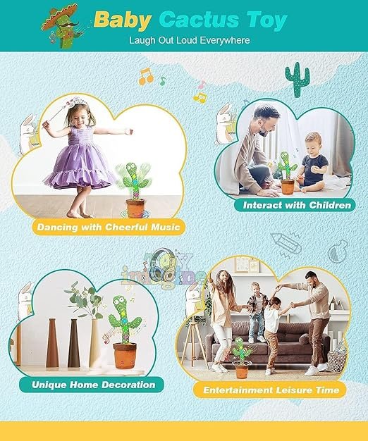 - 00% SAFE FOR CHILDREN STRONG MATERIAL Toy Imagine dancing cactus toy is made of non-toxic and harmless soft plush fabric. This cactus toy meets international children’s toy safety requirements. The electronic cactus toy has a plastic bottom that allows it to stand firmly on the table; to clean, simply wash with a moist towel.